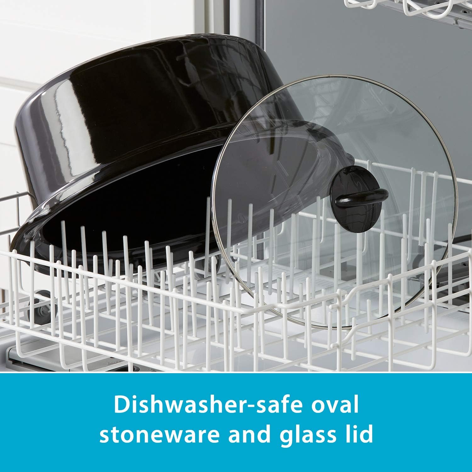 6-quart oval stoneware serves 7+ people and easily fits a 6-pound roast. Perfect for family dinners or small get-togethers.