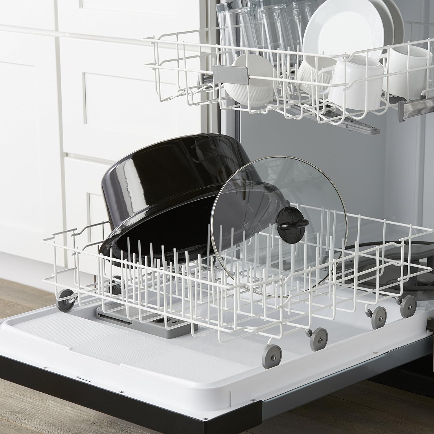 - Polished silver, stainless steel exterior with black accents and plastic handles